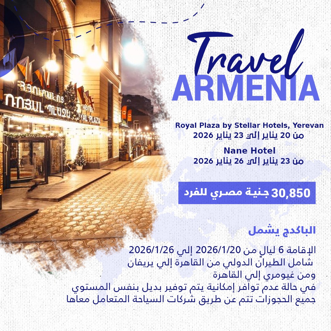 شامل الطيران الدولي من القاهرة إلي يريفان ومن غيومري إلى القاهرة