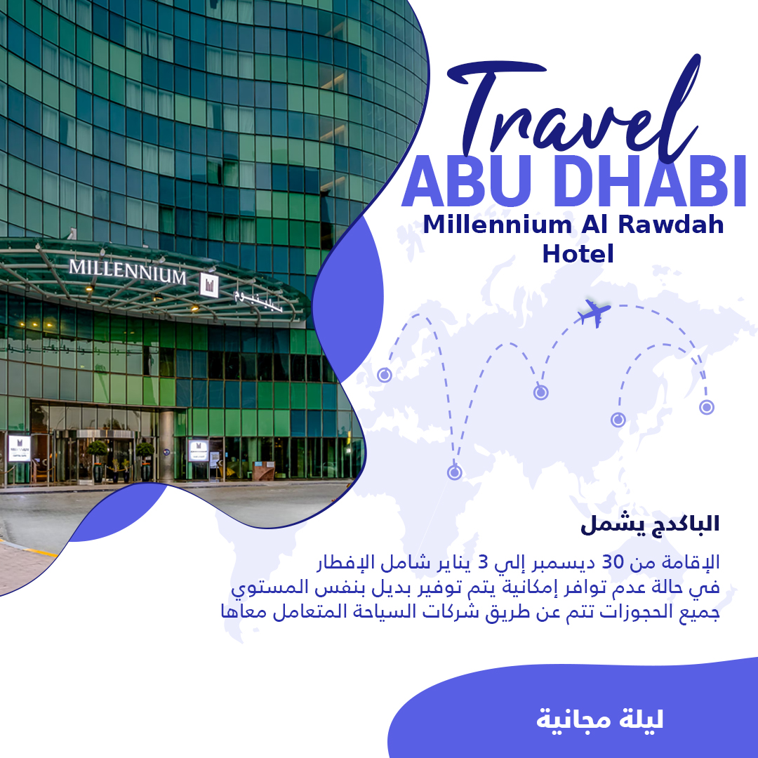 Beauty beachesإستمتع بالسفر والإقامة فى أبو ظبى 11 Dec الباكدج يشمل الإقامة من 30 ديسمبر إلى 3 يناير شامل الإفطار في حالة عدم توافر إمكانية يتم توفير بديل بنفس المستوي جميع الحجوزات تتم عن طريق شركات السياحة المتعامل معاها