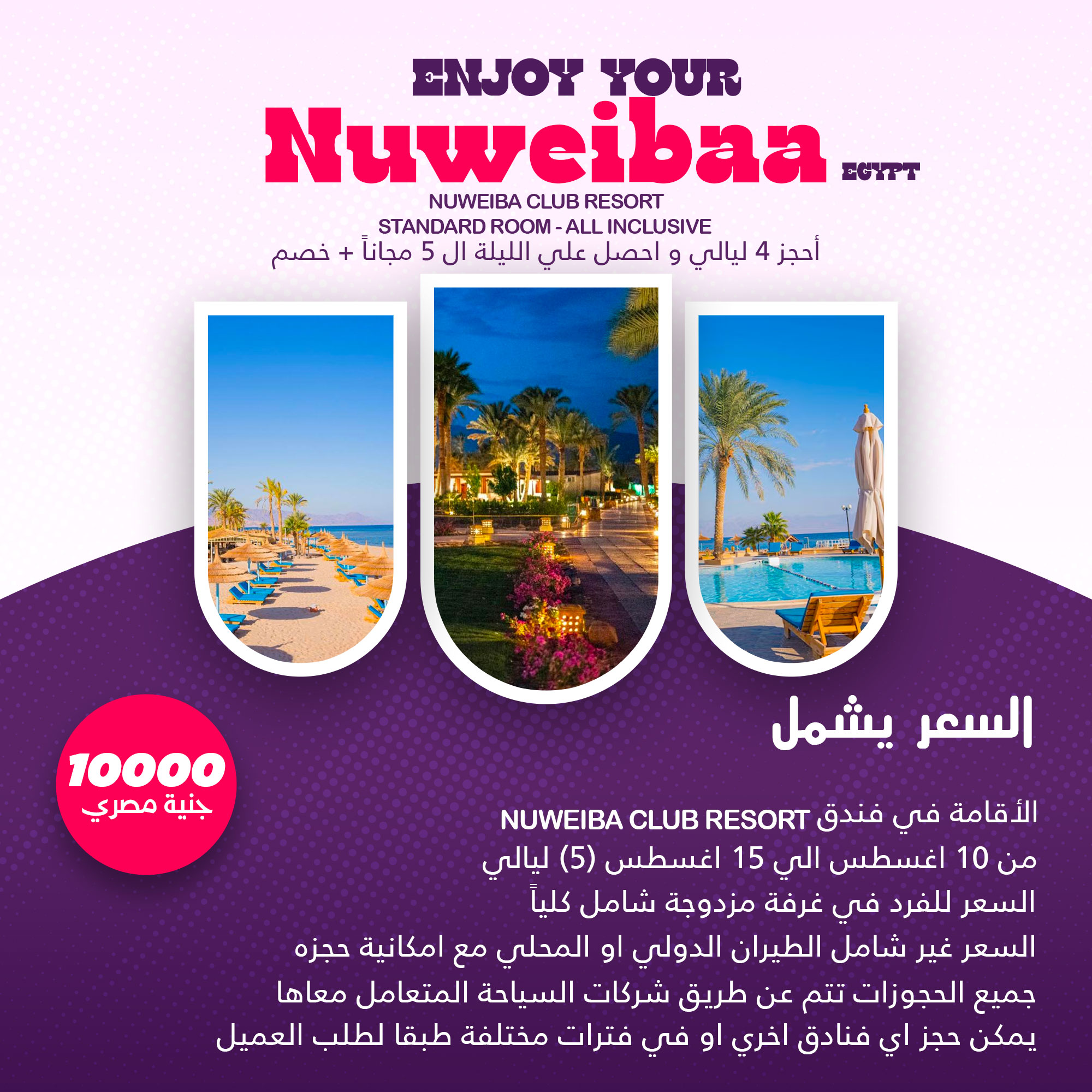 من 10 اغسطس الي 15 اغسطس 5 ليالي