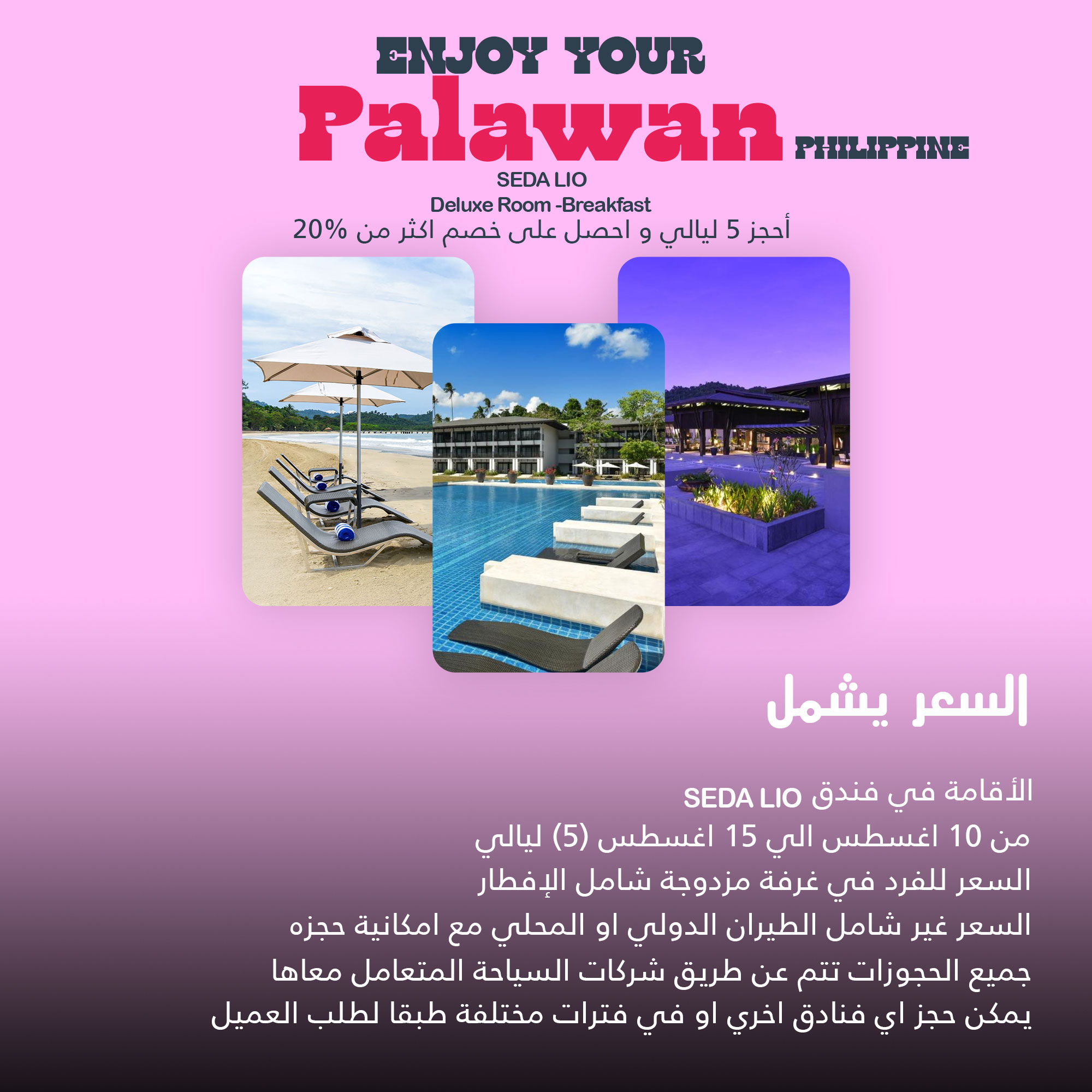 السعر غير شامل الطيران الدولي او المحلي مع امكانية حجزه