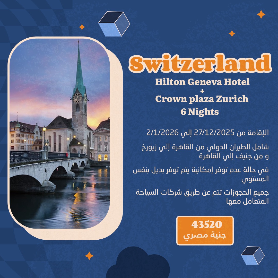 شامل الطيران الدولي من القاهرة إلي زيورخ و من جنيف إلى القاهرة