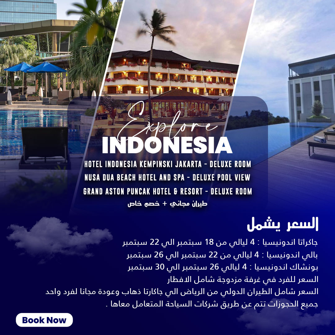 السعر شامل الطيران الدولي من الرياض الي جاكارتا ذهاب وعودة مجانا لفرد واحد