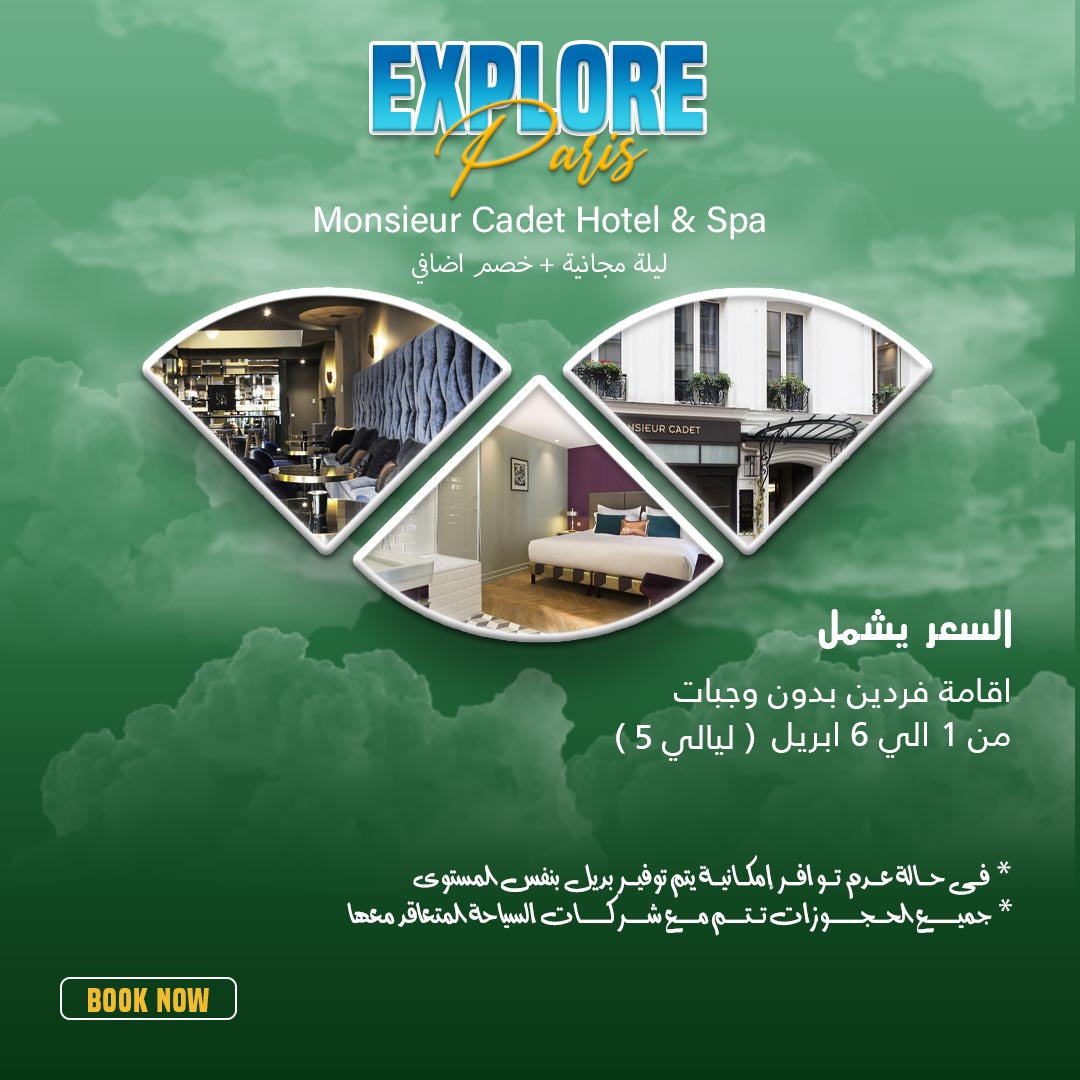 Beauty beachesاستمتع بسحر باريس وإقامة لا تُنسى 05 Mar السعر يشمل اقامة فردين بدون وجبات (من 1 الي 6 ابريل (5 ليالي