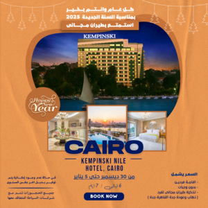 السعر يشمل اقامة فردين بدون وجبات تذكرة طيران مجاني لفرد (ذهاب وعودة جدة القاهرة جدة) [...]
