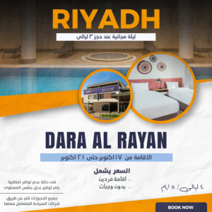 احصل علي ليلة مجانية عند حجز 3 ليالي العرض يشمل اقامة فردين بدون وجبات [...]