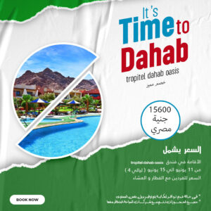 السعر 15600 جنية مصري السعر يشمل tropital dahab oasis الاقامة في فندق من 11 يونيو [...]