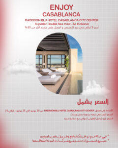 السعر يشمل Radisson Blu Hotel Casablanca City Centerالاقامة في فندق من 20 يونيو الي 25 [...]