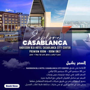 السعر يشمل RADISSON BLU HOTEL CASABLANCA CITY CENTER الأقامة في فندق من 20 سبتمبر الي [...]