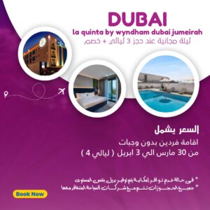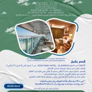السعر يشمل Rose Park Hotel-Al Barsha الاقامة في فندق (من 1 ابريل الي 6 ابريل( [...]