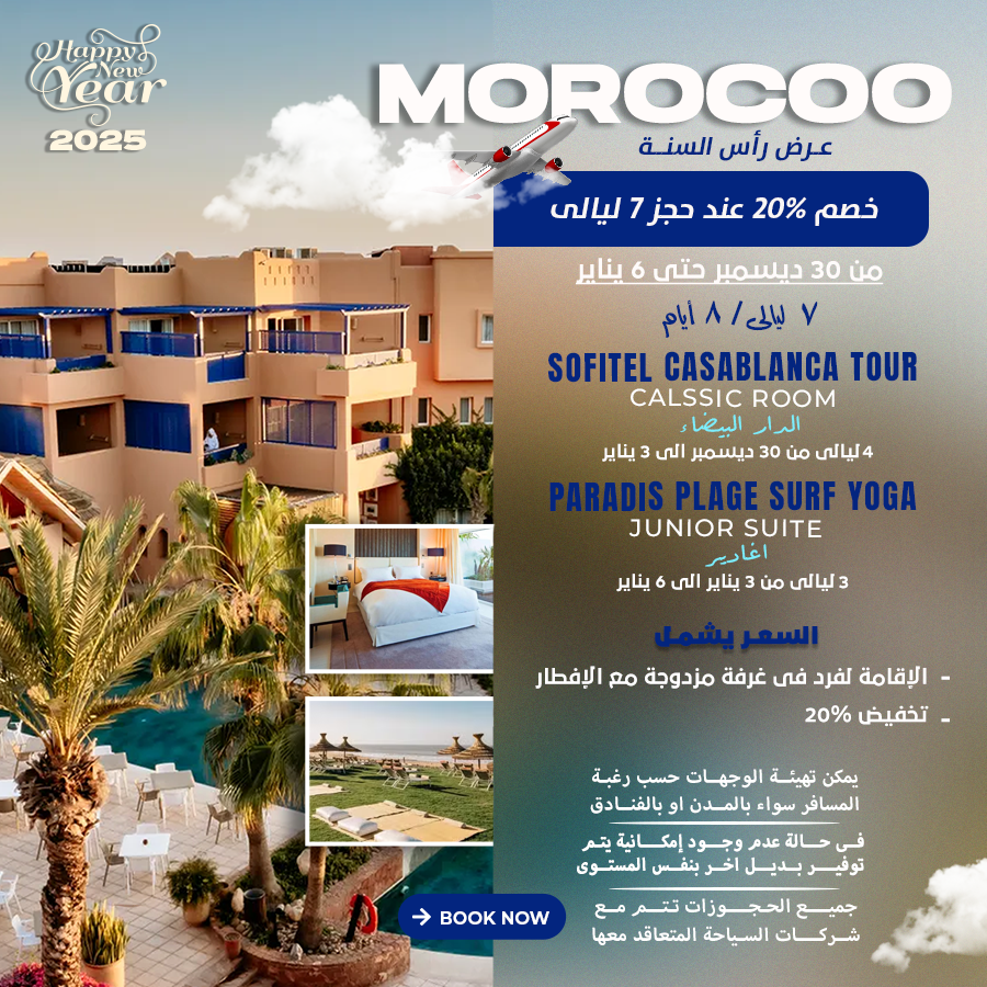السعر يشمل الاقامة لفرد في غرفة مزدوجة مع الافطار تخفيض %20