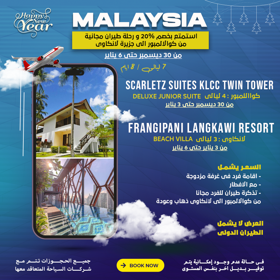 السعر يشمل اقامة فرد في غرفة مزدوجة مع الافطار تذكرة طيران للفرد مجانا من كوالالمبور الي لانكاوي ذهاب وعودة