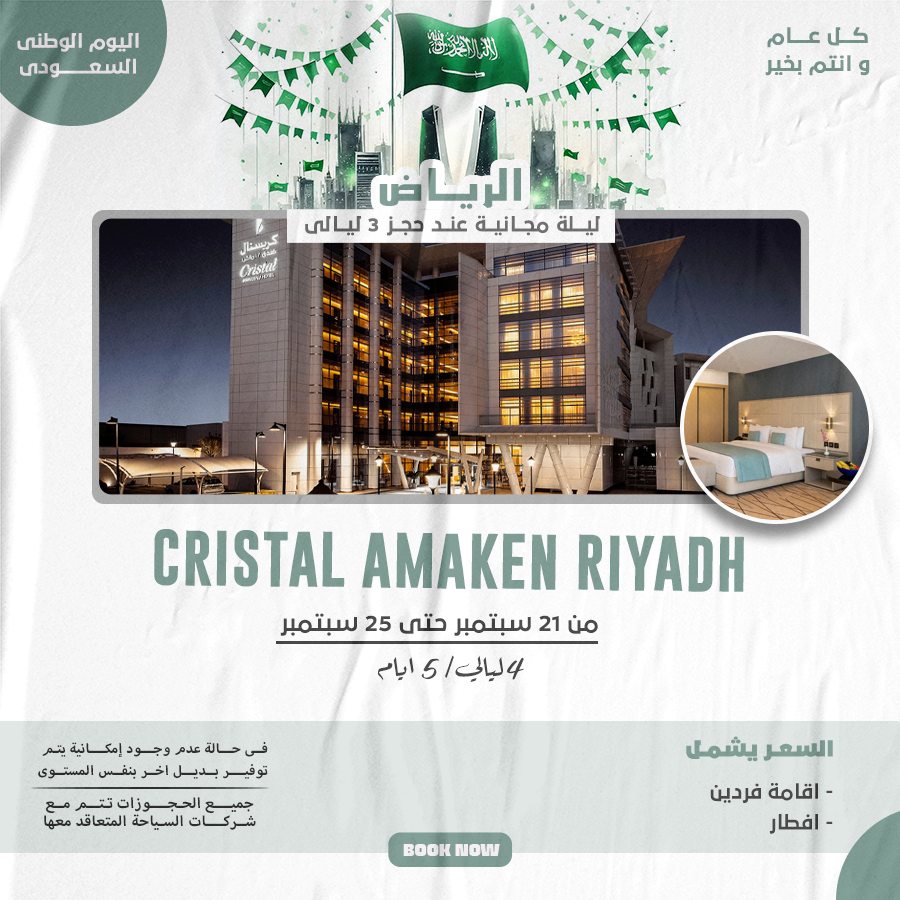 عروض_اليوم_الوطني_السعودي السعر يشمل اقامة فردين افطار مجاني