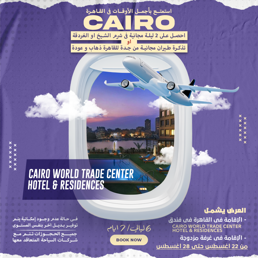 العرض يشمل الاقامة في القاهره الاقامة في غرفة مزدوجة