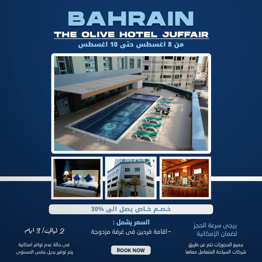 Beauty beachesاستمتع بالاقامة في البحرين Posted on 06/08/202406/08/2024 by VTGI-ADMIN 06 Aug العرض يشمل الاقامة لفردين في غرفة مزدوجة Continue reading →