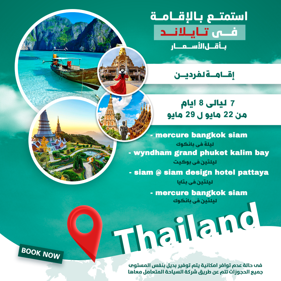 إقامة لفردين ليلة في بانكوك ليلتين في بوكيت ليلتين في بتايا ليلتين في بانكوك