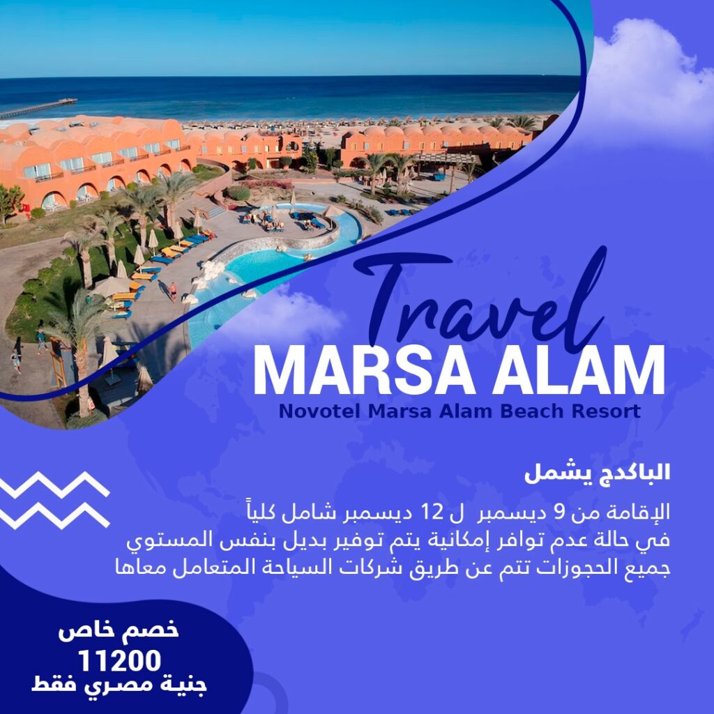 خصم خاص 11200 جنية مصري فقط الباكدج يشمل الإقامة من 9 ديسمبر ل 12 ديسمبر شامل كلياً في حالة عدم توافر إمكانية يتم توفير بديل بنفس المستوي جميع الحجوزات تتم عن طريق شركات السياحة المتعامل معاها