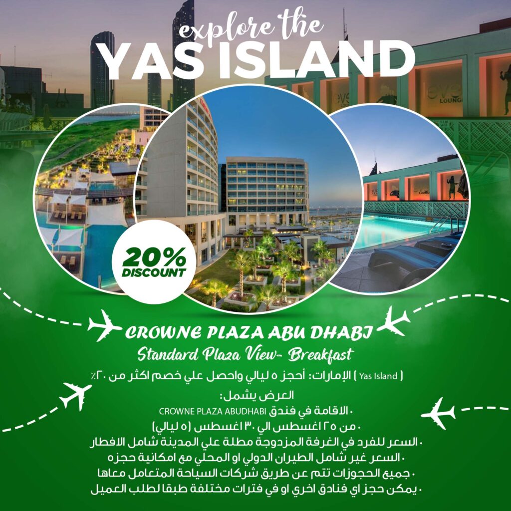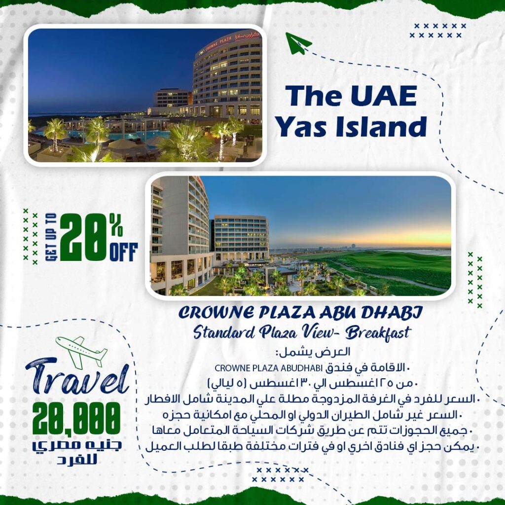 السعر 20000 جنية مصري للفرد السعر يشمل CROWNE PLAZA ABUDHABIالاقامة في فندق من ٢٥ اغسطس الي ٣٠ اغسطس (٥) ليالي السعر للفرد في الغرفة المزدوجة مطلة علي المدينة شامل الافطار السعر غير شامل الطيران الدولي او المحلي مع امكانية حجزه جميع الحجوزات تتم عن طريق شركات السياحة المتعامل معاها يمكن حجز اي فنادق اخري او […]