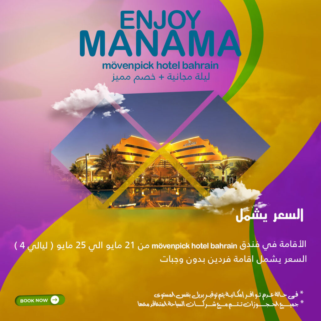 السعر يشمل (من 21 مايو الي 25 مايو (4 ليالي Movenpick Hotel bahrain الاقامة في فندق السعر يشمل اقامة فردين بدون وجبات