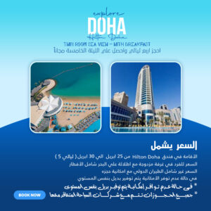 السعر يشمل Hilton Doha الاقامة في فندق (من 25 ابريل الي 30 ابريل( 5 ليالي [...]