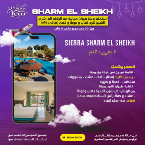 السعر يشمل إقامة فردين في غرفة مزدوجة شامل كليا فطار_غداء_مشروبات_سناكس_خدمة وضريبة تذكرة طيران للفرد مجانا [...]