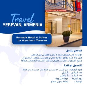 الباكدج يشمل الإقامة في الفندق لمدة 6 ليال والطيران من الرياض في حالة عدم توافر [...]