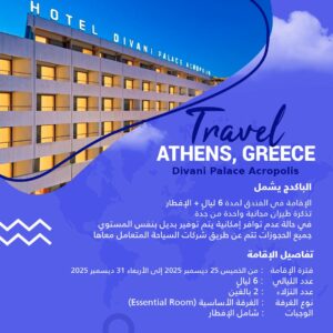 الباكدج يشملالإقامة في الفندق لمدة 6 ليال + الإفطار في حالة عدم توافر إمكانية يتم [...]