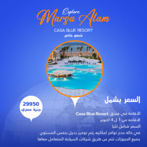 السعر 29950 جنية مصري السعر يشمل Casa Blue Resort الاقامة في فندق الاقامه من 1 [...]