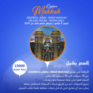 السعر 15000 جنية مصري ADDRESS JABAL OMAR MAKKAH الاقامة في فندق من 25 سبتمبر الي [...]