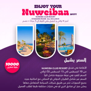السعر 10000 جنية مصري السعر يشمل Nuweiba Club Resort الاقامة في فندق من 10 اغسطس [...]