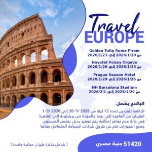 السعر 51420 جنية مصري شامل تذكرة طيران مجانية واحدة Golden Tulip Rome Piram 2026/1/23 من [...]