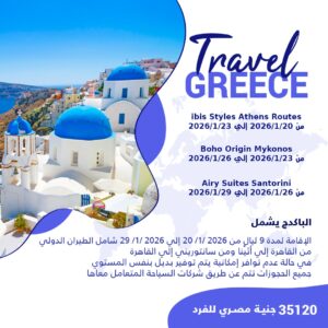 السعر 35120 جنية مصري للفرد ibis Styles Athens Routes من 2026/1/20 الي 2026/1/23 Boho Origin [...]