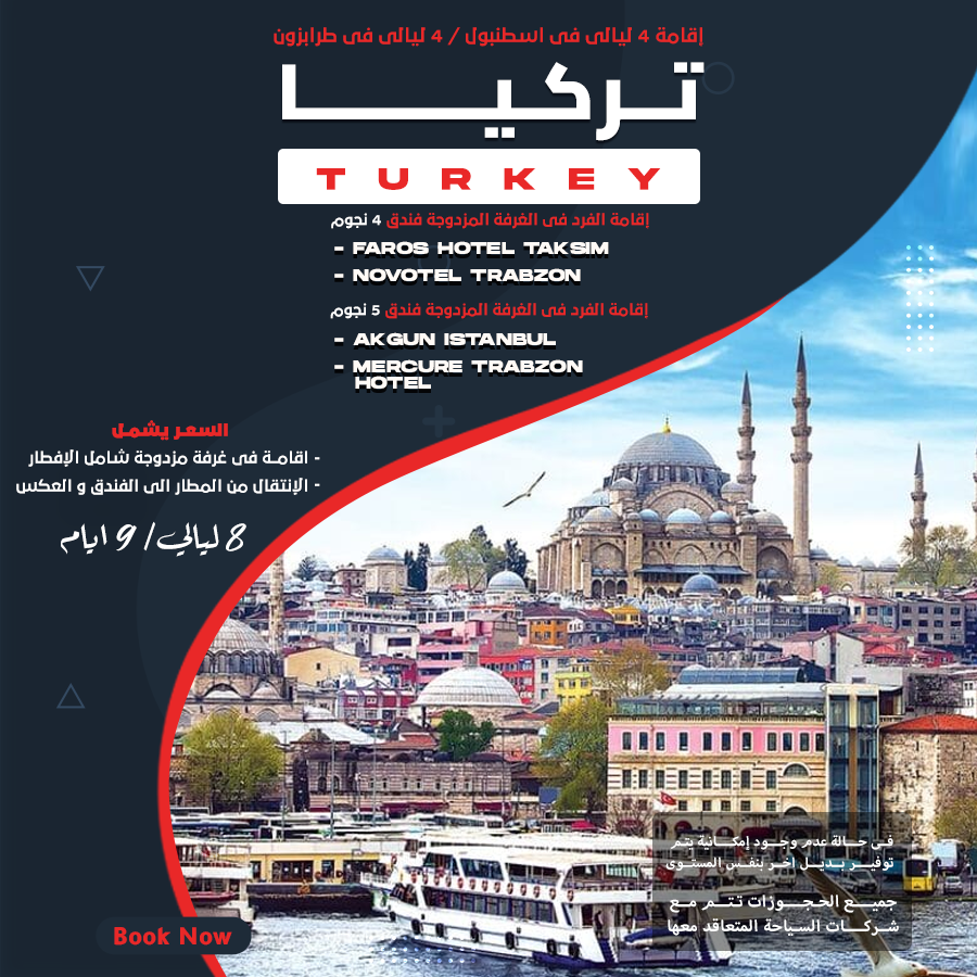 Beauty beachesTURKEY/تركيا إقامة 4 ليالي في اسطنبول/4ليالي في طرابزون السعر يشمل إقامة في غرفة مزدوجة شامل الافطار الانتقال من المطار الي الفندق والعكس